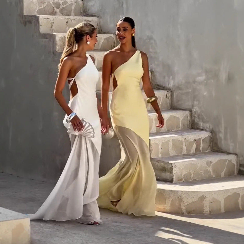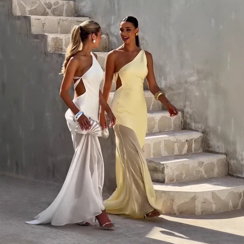 Le design à une épaule apporte une touche moderne et sensuelle, tandis que la matière légère et fluide crée un mouvement aérien à chacun de vos pas. Parfaite pour une soirée chic, un événement spécial ou un moment où vous souhaitez briller, cette robe incarne le raffinement et la confiance féminine.
