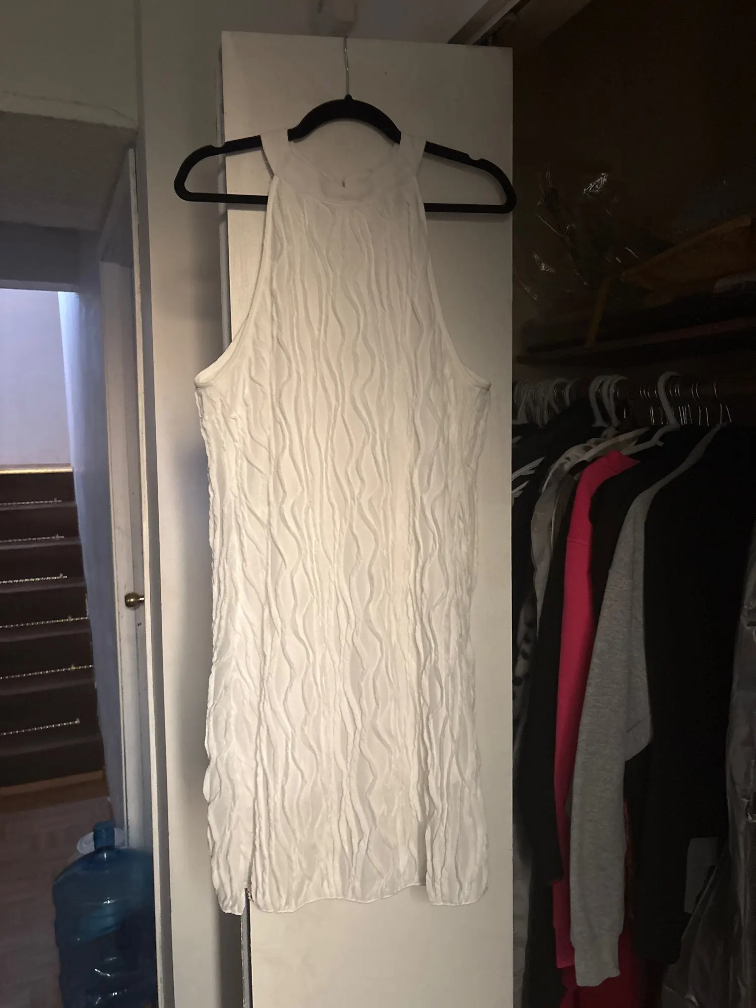 La robe est très jolie, la matière n'est pas fine, on ne voit pas à travers, j'adore la texture de la matière.