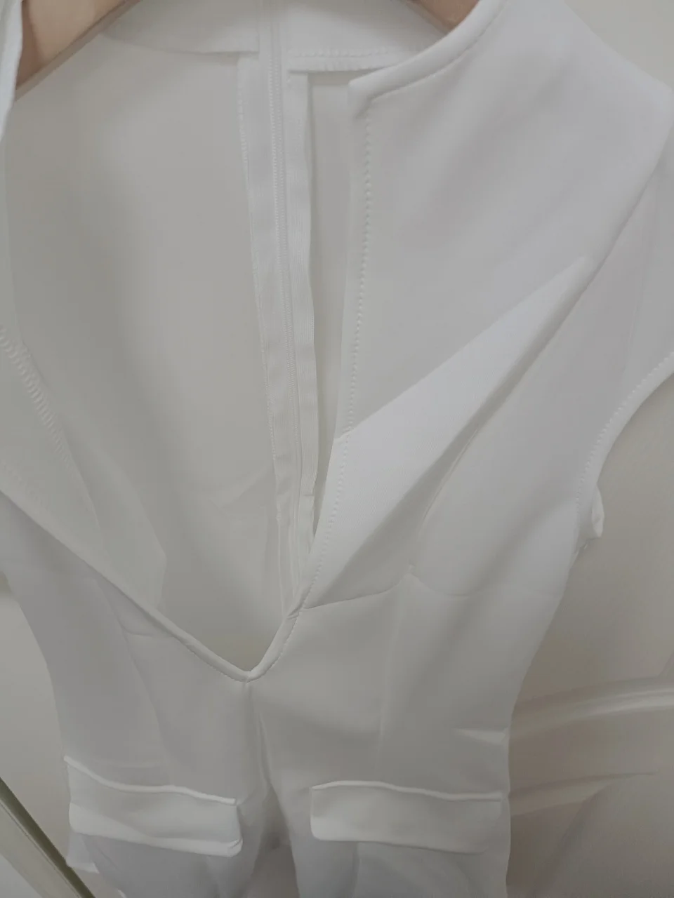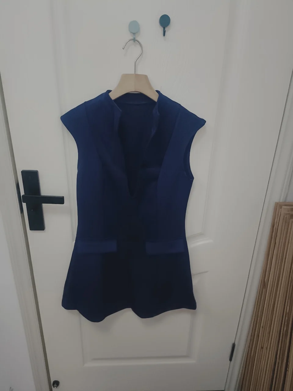Idéale pour une soirée chic, un cocktail privé ou un dîner où tout commence avec une entrée remarquée, elle marie sensualité et assurance. Les petits revers discrets à la taille et l’absence de manches accentuent son allure contemporaine et sophistiquée.