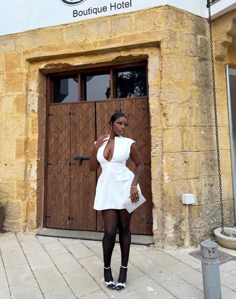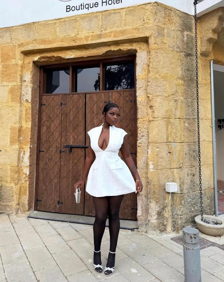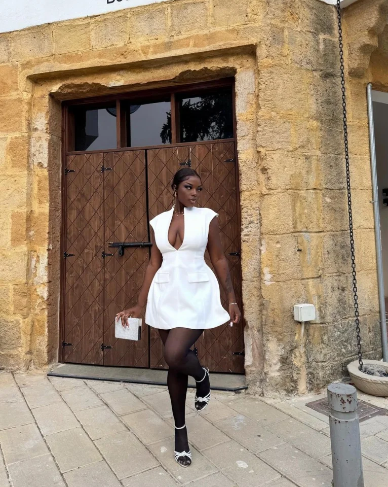 Avec ses lignes nettes, sa coupe tailleur revisité et son décolleté vertigineux, la robe Maëva est une pièce statement pensée pour celles qui n’ont pas peur d’imposer leur style. Sa silhouette structurée, à la fois épurée et puissante, sublime la silhouette comme un écrin de modernité.